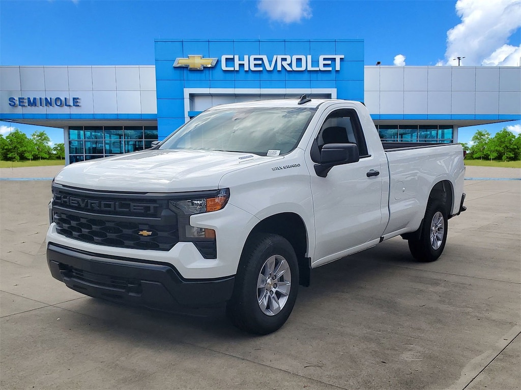 Standard Suspension Package, Trailering Package (Hitch Guidance), WT Convenience Package (Deep-Tinted Glass and Electric Rear-Window Defogger), WT Value Package, 8-Speed Automatic, H1t Jet Black Vinyl, 2 Speakers, 2-Speaker Audio System, 220 Amp Alternator, 3.42 Rear Axle Ratio, 3.5 Monochromatic Display Driver Info Center, 4-Way Manual Driver Seat Adjuster, 4-Wheel Disc Brakes, 40/20/40 Front Split Bench Seat, ABS brakes, Air Conditioning, Apple CarPlay/Android Auto, Auto High-beam Headlights, Automatic Emergency Braking, Black (Semi-Gloss) Front Bumper, Black (Semi-Gloss) Rear Bumper, Bluetooth® For Phone, Brake assist, Compass, Delay-off headlights, Driver door bin, Dual front impact airbags, Dual front side impact airbags, Electronic Cruise Control, Electronic Stability Control, Emergency communication system: OnStar, Following Distance Indicator, Forward Collision Alert, Front anti-roll bar, Front Center Armrest w/Storage, Front Frame-Mounted Black Recovery Hooks, Front Pedestrian Braking, Front reading lights, Front wheel independent suspension, Fully automatic headlights, HD Rear Vision Camera, Heated door mirrors, Heated Power-Adjustable Outside Mirrors, Illuminated entry, Inside Rear-View Mirror w/Tilt, IntelliBeam Automatic High Beam On/Off, Lane Keep Assist w/Lane Departure Warning, Locking Tailgate, Low tire pressure warning, Manual Tailgate Function w/No EZ Lift, Manual Tilt Wheel Steering Column, Occupant sensing airbag, OnStar Services Capable, Outside temperature display, Overhead airbag, Overhead console, Panic alarm, Passenger door bin, Passenger vanity mirror, Power door mirrors, Power Front Windows w/Driver Express Up/Down, Power steering, Power windows, Premium audio system: Chevrolet Infotainment 3, Radio data system, Radio: Chevrolet Infotainment 3 System, Rear reading lights, Rear step bumper, Remote Keyless Entry, Remote keyless entry, Rubberized-Vinyl Floor Covering, SiriusXM Delete, Solar Absorbing Tinted Glass, Speed control, Speed-sensing steering, Standard Tailgate, Tachometer, Teen Driver, Tilt steering wheel, Tire Pressure Monitoring System, Traction control, Trip computer, Variably intermittent wipers, Vinyl Seat Trim, Voltmeter, Wheels: 17 x 8 Bright Silver Painted Aluminum, Wheels: 17 x 8 Ultra Silver Painted Steel, and Wi-Fi Hot Spot Capable.