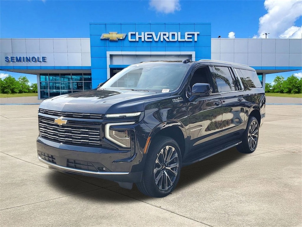 Advanced Trailering Package (Blind Zone Steering Assist with Trailering, Hitch View with Pan/Zoom Image Adjustment, and Smart Trailer Integration Indicator), Max Trailering Package (2-Speed Active Electronic AutoTrac Transfer Case, Extra Capacity Cooling System, Hill Descent Control, and Integrated Trailer Brake Controller), Sun and Tow Package (Dual-Pane Power Panoramic Sunroof), 10 Speakers, 15 Diagonal Multi-Color Head-Up Display, 3.23 Rear Axle Ratio, 3rd Row 60/40 Power-Folding Split-Bench, 3rd row seats: split-bench, 4-Way Power Driver Lumbar Seat Adjuster, 4-Way Power Front Passenger Lumbar Seat Adjuster, 4-Wheel Disc Brakes, 8-Way Power Driver Seat Adjuster, 8-Way Power Front Passenger Seat Adjuster, ABS brakes, Adaptive suspension, Air Conditioning, Alloy wheels, AM/FM radio: SiriusXM with 360L, Apple CarPlay/Android Auto, Auto High-beam Headlights, Auto-dimming door mirrors, Auto-dimming Rear-View mirror, Auto-leveling suspension, Automatic temperature control, Bose 10-Speaker Surround with CenterPoint, Brake assist, Bright Front and Rear Door Sill Plates, Bumpers: body-color, Chrome Door Handles with Body-Color Strip, Compass, Delay-off headlights, Driver door bin, Driver vanity mirror, Dual Exhaust System, Dual front impact airbags, Dual front side impact airbags, Electronic Stability Control, Emergency communication system: OnStar Services capable, Exterior Parking Camera Rear, Four wheel independent suspension, Front anti-roll bar, Front Bucket Seats, Front Center Armrest, Front dual zone A/C, Front fog lights, Front LED Fog Lamps, Front reading lights, Fully automatic headlights, Garage door transmitter, Heads-Up Display, Heated 2nd Row Outboard Seats, Heated door mirrors, Heated Driver and Front Passenger Seats, Heated front seats, Heated Power-Adjustable Outside Mirrors, Heated rear seats, Heated Steering Wheel, Heated steering wheel, Illuminated entry, Inside Rearview Auo-Dimming Rear Camera Mirror, Interior Camera, LED Headlamps with LED Daytime Running Lamps, LED Tail Lamps, Low tire pressure warning, Magnetic Ride Control Suspension, Memory seat, Memory Settings, Navigation system: Google built-in compatibility (select service plan required, terms and limitations apply), Occupant sensing airbag, Outside temperature display, Overhead airbag, Overhead console, Panic alarm, Passenger door bin, Passenger vanity mirror, Perforated Heated and Ventilated Seats, Perforated Leather Seating Surfaces, Power door mirrors, Power driver seat, Power Liftgate, Power passenger seat, Power Release 2nd Row Bucket Seats, Power steering, Power Tilt and Telescopic Steering Column, Power windows, Power-Sliding Center Floor Console, Radio data system, Radio: 17.7 Diagonal Advanced Color LCD Display, Rain sensing wipers, Rear air conditioning, Rear anti-roll bar, Rear Power Liftgate, Rear reading lights, Rear window defroster, Rear window wiper, Remote keyless entry, Security system, SiriusXM with 360L Trial Subscription, Speed control, Speed-sensing steering, Split folding rear seat, Spoiler, Steering wheel memory, Steering wheel mounted audio controls, Super Cruise, Tachometer, Telescoping steering wheel, Tilt steering wheel, Traction control, Trip computer, Turn signal indicator mirrors, Universal Home Remote, Variably intermittent wipers, Ventilated front seats, Voltmeter, Wheel Locks (set of 4), Wheels: 22 x 9 Bright Machined Aluminum, Wireless Apple CarPlay/Wireless Android Auto, and Wireless Phone Charging.