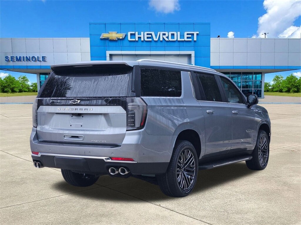 Advanced Security Package (Glass Breakage Sensor, Self-Powered Horn Theft-Deterrent Alarm System, Vehicle Inclination Sensor, and Vehicle Interior Movement Sensor), Technology & Entertainment Package (Dual-Pane Power Panoramic Sunroof and Rear Seat Media System), Technology Package (15 Diagonal Multi-Color Head-Up Display, AutoSense Hands-Free Power Liftgate, and Inside Rearview Auo-Dimming Rear Camera Mirror), 10 Speakers, 20 x 9 Polished Aluminum Wheels, 22 6-Spoke Low Gloss Black Wheels, 3.23 Rear Axle Ratio, 3rd Row 60/40 Power-Folding Split-Bench, 3rd row seats: split-bench, 4-Way Power Driver Lumbar Seat Adjuster, 4-Way Power Front Passenger Lumbar Seat Adjuster, 4-Wheel Disc Brakes, 8-Way Power Driver Seat Adjuster, 8-Way Power Front Passenger Seat Adjuster, ABS brakes, Adaptive suspension, Air Conditioning, Alloy wheels, AM/FM radio: SiriusXM with 360L, Apple CarPlay/Android Auto, Auto High-beam Headlights, Auto-dimming door mirrors, Auto-Dimming Inside Rear-View Mirror, Auto-dimming Rear-View mirror, Auto-leveling suspension, Automatic temperature control, Black Grille with Black Bowtie Emblem, Bose 10-Speaker Surround with CenterPoint, Brake assist, Bright Front and Rear Door Sill Plates, Bumpers: body-color, Chrome Door Handles with Body-Color Strip, Chrome Mirror Caps, Compass, Delay-off headlights, Driver door bin, Driver vanity mirror, Dual Exhaust System, Dual front impact airbags, Dual front side impact airbags, Electronic Stability Control, Emergency communication system: OnStar Services capable, Exterior Parking Camera Rear, Four wheel independent suspension, Front anti-roll bar, Front Bucket Seats, Front Center Armrest, Front dual zone A/C, Front fog lights, Front LED Fog Lamps, Front reading lights, Fully automatic headlights, Garage door transmitter, Heated 2nd Row Outboard Seats, Heated door mirrors, Heated Driver and Front Passenger Seats, Heated front seats, Heated Power-Adjustable Outside Mirrors, Heated rear seats, Heated Steering Wheel, Heated steering wheel, Illuminated entry, Interior Camera, LED Headlamps with LED Daytime Running Lamps, LED Tail Lamps, Low tire pressure warning, Magnetic Ride Control Suspension, Memory seat, Memory Settings, Navigation system: Google built-in compatibility (select service plan required, terms and limitations apply), Occupant sensing airbag, Outside temperature display, Overhead airbag, Overhead console, Panic alarm, Passenger door bin, Passenger vanity mirror, Perforated Heated and Ventilated Seats, Perforated Leather Seating Surfaces, Power door mirrors, Power driver seat, Power Liftgate, Power passenger seat, Power Release 2nd Row Bucket Seats, Power steering, Power Tilt and Telescopic Steering Column, Power windows, Power-Sliding Center Floor Console, Radio data system, Radio: 17.7 Diagonal Advanced Color LCD Display, Rain sensing wipers, Rear air conditioning, Rear anti-roll bar, Rear Power Liftgate, Rear reading lights, Rear window defroster, Rear window wiper, Remote keyless entry, Security system, SiriusXM with 360L Trial Subscription, Speed control, Speed-sensing steering, Split folding rear seat, Spoiler, Steering wheel memory, Steering wheel mounted audio controls, Tachometer, Telescoping steering wheel, Tilt steering wheel, Traction control, Trip computer, Turn signal indicator mirrors, Universal Home Remote, Variably intermittent wipers, Ventilated front seats, Voltmeter, Wheels: 22 Steel, Wireless Apple CarPlay/Wireless Android Auto, and Wireless Phone Charging.Sterling Gray Metallic 2026 Chevrolet Suburban Premier RWD 10-Speed Automatic with Overdrive EcoTec3 5.3L V8