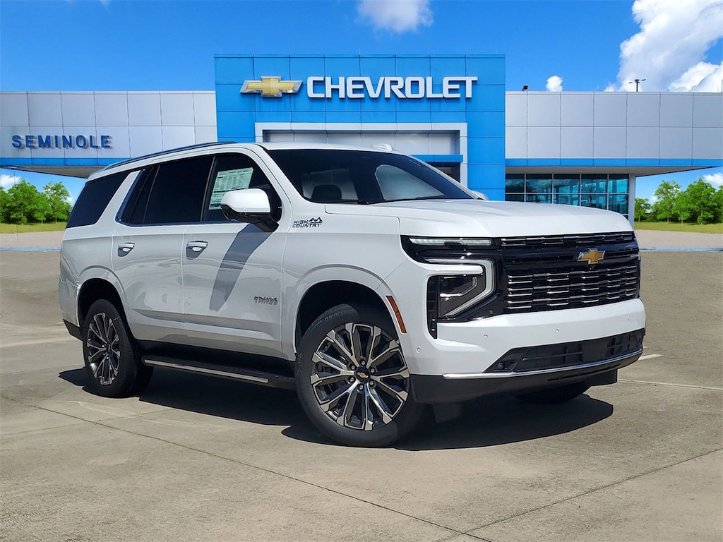 Advanced Trailering Package (Blind Zone Steering Assist w/Trailering, Hitch View w/Pan/Zoom Image Adjustment, and Smart Trailer Integration Indicator), Max Trailering Package (Extra Capacity Cooling System and Integrated Trailer Brake Controller), Sun & Tow Package (Dual-Pane Power Panoramic Sunroof), Hvb Jet Black / Mocha Leather, 10 Speakers, 15 Diagonal Multi-Color Head-Up Display, 1st & 2nd Row Color-Keyed Carpeted Floor Mats, 3-Spoke Wrapped Steering Wheel, 3.23 Rear Axle Ratio, 3rd Row 60/40 Power-Folding Split-Bench Seat, 3rd row seats: split-bench, 4-Way Power Driver Lumbar Seat Adjuster, 4-Way Power Front Passenger Lumbar Seat Adjuster, 4-Wheel Disc Brakes, 8-Way Power Driver Seat Adjuster, 8-Way Power Front Passenger Seat Adjuster, ABS brakes, Adaptive suspension, Air Conditioning, Alloy wheels, AM/FM radio: SiriusXM with 360L, Apple CarPlay/Android Auto, Auto High-beam Headlights, Auto-dimming door mirrors, Auto-dimming Rear-View mirror, Auto-leveling suspension, Automatic temperature control, Bose 10-Speaker Centerpoint Surround Audio Sys Ft, Brake assist, Bright Front & Rear Door Sill Plates, Bumpers: body-color, Chrome Door Handles w/Body-Color Strip, Color-Keyed Carpeting Floor Covering, Compass, Delay-off headlights, Driver & Front Passenger Heated & Ventilated Seats, Driver door bin, Driver vanity mirror, Dual Exhaust System, Dual front impact airbags, Dual front side impact airbags, Electronic Stability Control, Emergency communication system: OnStar and Chevrolet connected services capable, Exterior Parking Camera Rear, Floor Console, Four wheel independent suspension, Front anti-roll bar, Front Bucket Seats, Front Center Armrest, Front dual zone A/C, Front fog lights, Front LED Fog Lamps, Front reading lights, Frontal Driver & Outboard Passenger Airbags, Fully automatic headlights, Garage door transmitter, Heads-Up Display, Heated 2nd Row Outboard Seats, Heated door mirrors, Heated Driver & Front Passenger Seats, Heated front seats, Heated rear seats, Heated Steering Wheel, Heated steering wheel, Illuminated entry, Inside Rearview Auto-Dimming Rear Camera Mirror, Interior Camera, Key Card, LED Headlamps w/LED Daytime Running Lamps, LED Tail Lamps, Low tire pressure warning, Magnetic Ride Control Suspension, Memory seat, Memory Settings, Navigation system: Google built-in compatibility (select service plan required, terms and limitations apply), Occupant sensing airbag, Outside Heated Power-Adjustable Mirrors, Outside temperature display, Overhead airbag, Overhead console, Panic alarm, Passenger door bin, Passenger vanity mirror, Perforated Leather Seat Trim, Power door mirrors, Power driver seat, Power Liftgate, Power passenger seat, Power Release 2nd Row Bucket Seats, Power steering, Power Tilt & Telescopic Steering Column, Power windows, Premium audio system: Chevrolet Infotainment 3 Premium, Radio data system, Radio: 17.7 Diagonal Advanced Color LCD Display, Rain sensing wipers, Rear air conditioning, Rear anti-roll bar, Rear Power Liftgate, Rear reading lights, Rear window defroster, Rear window wiper, Remote keyless entry, Remote Start, Security system, Set of 4 Wheel Locks (LPO), SiriusXM w/360L Trial Subscription, Speed control, Speed-sensing steering, Split folding rear seat, Spoiler, Steering wheel memory, Steering wheel mounted audio controls, Tachometer, Telescoping steering wheel, Tilt steering wheel, Traction control, Trip computer, Turn signal indicator mirrors, Universal Home Remote, Variably intermittent wipers, Ventilated front seats, Voltmeter, Wheels: 22 x 9 Bright Machined Aluminum, and Wireless Phone Charging.
