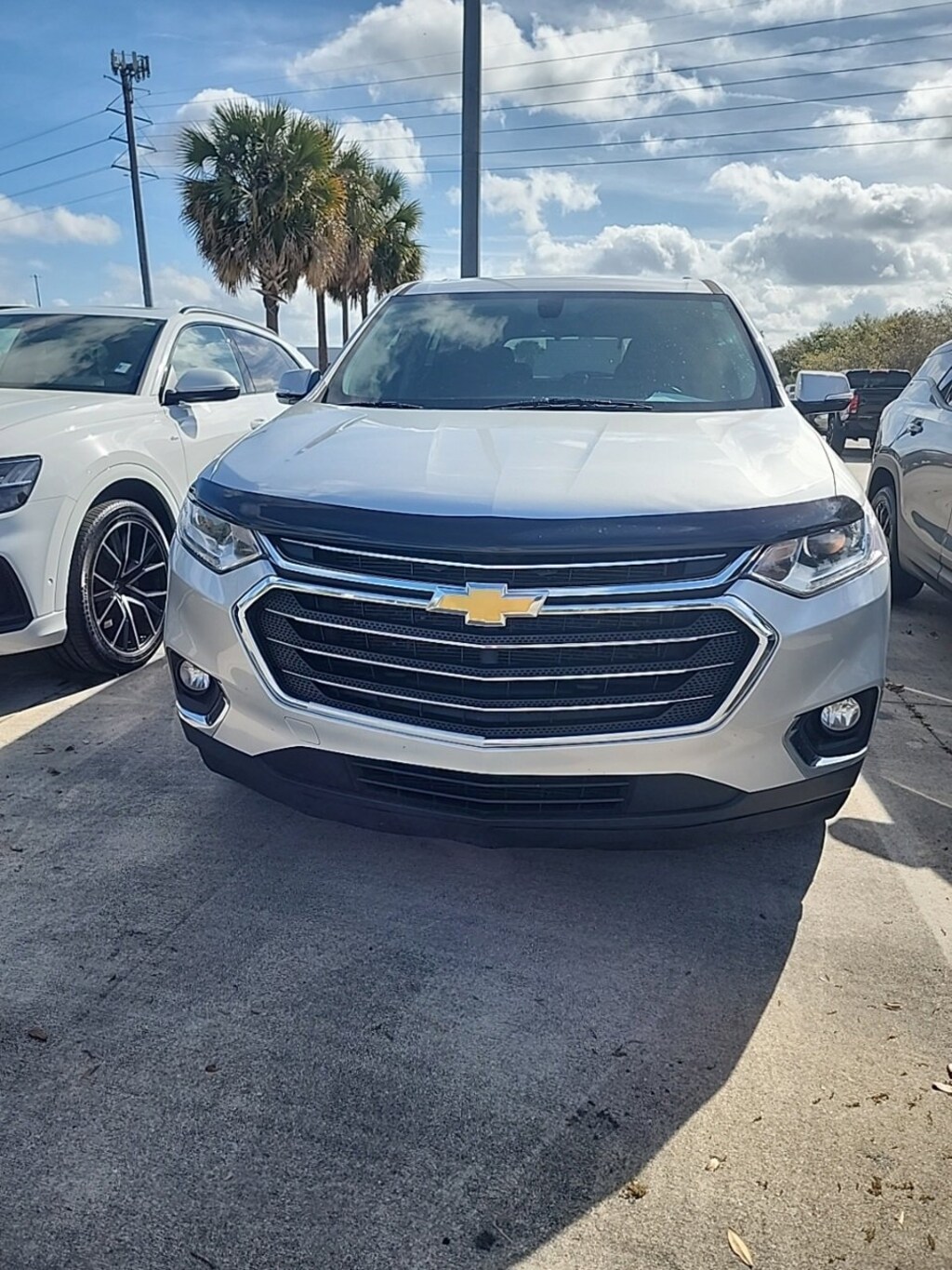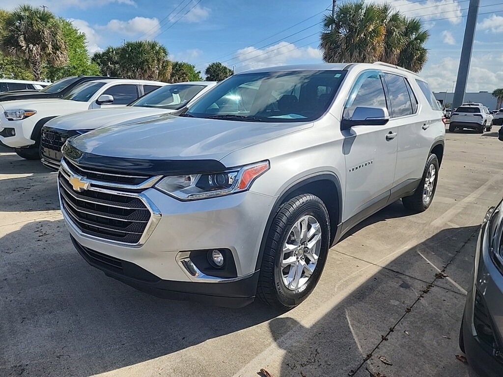 2020 Chevrolet Traverse LT 3.6L V6 SIDI VVTPreferred Equipment Group 1LT, Radio: Chevrolet Infotainment 3 Plus System, SiriusXM w/360L.18/27 City/Highway MPGPreferred Equipment Group 1LT, Radio: Chevrolet Infotainment 3 Plus System, SiriusXM w/360L, 3.49 Axle Ratio, 3rd row seats: split-bench, 4-Wheel Disc Brakes, 6 Speakers, 7-Passenger Seating (2-2-3 Seating Configuration), ABS brakes, Air Conditioning, Alloy wheels, AM/FM radio: SiriusXM, Apple CarPlay/Android Auto, Automatic temperature control, Brake assist, Bumpers: body-color, Compass, Delay-off headlights, Driver door bin, Driver vanity mirror, Dual front impact airbags, Dual front side impact airbags, Electronic Stability Control, Emergency communication system: OnStar and Chevrolet connected services capable, Four wheel independent suspension, Front anti-roll bar, Front Bucket Seats, Front Center Armrest, Front dual zone A/C, Front fog lights, Front reading lights, Fully automatic headlights, Heated door mirrors, High-Intensity Discharge Headlights, Illuminated entry, Leather steering wheel, Low tire pressure warning, Occupant sensing airbag, Outside temperature display, Overhead airbag, Overhead console, Panic alarm, Passenger door bin, Passenger vanity mirror, Power door mirrors, Power driver seat, Power steering, Power windows, Premium Cloth Seat Trim, Radio data system, Radio: Chevrolet Infotainment System AM/FM Stereo, Rear air conditioning, Rear anti-roll bar, Rear reading lights, Rear window defroster, Rear window wiper, Remote keyless entry, Roof rack: rails only, Security system, SiriusXM Radio, Speed control, Speed-sensing steering, Spoiler, Steering wheel mounted audio controls, Tachometer, Telescoping steering wheel, Tilt steering wheel, Traction control, Trip computer, Turn signal indicator mirrors, Variably intermittent wipers, Voltmeter, and Wheels: 18 Bright Silver Painted Aluminum.