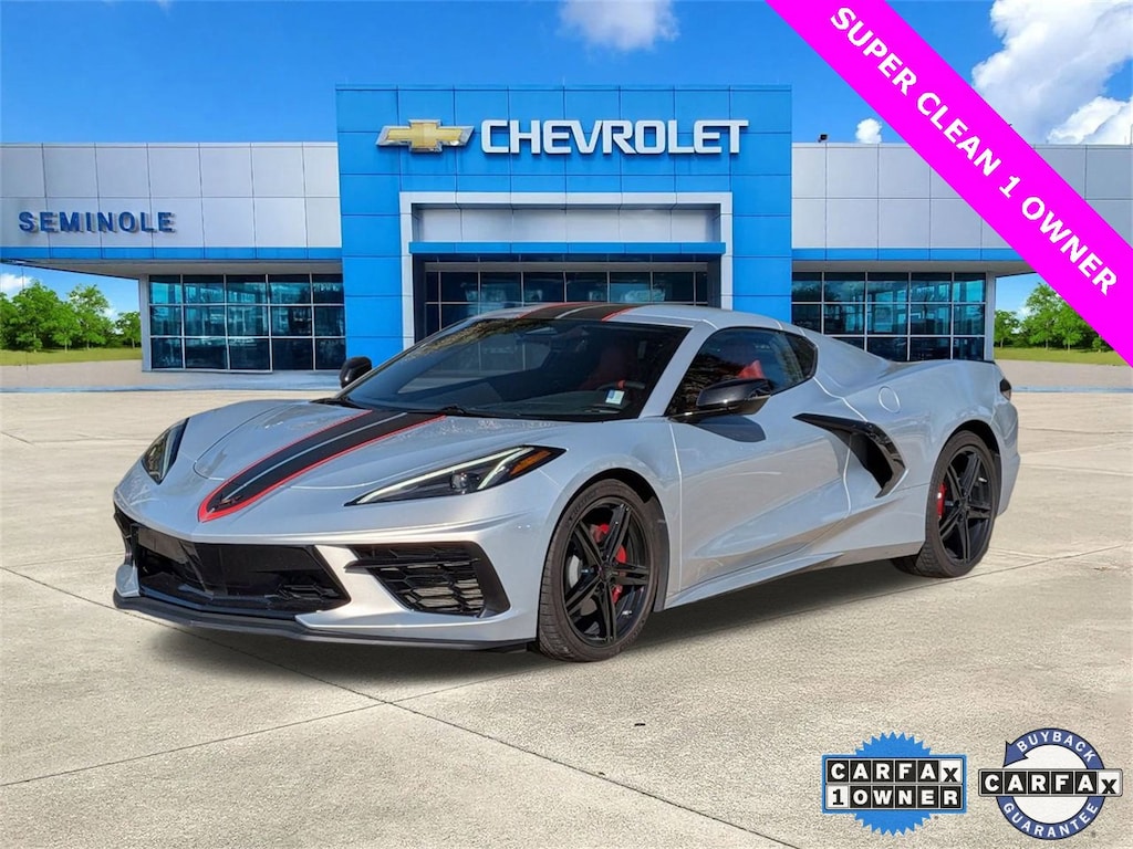 Carbon Flash Metallic Painted Outside Mirrors (Carbon Flash Metallic-Painted Outside Mirrors), Preferred Equipment Group 1LT, Chevrolet Certified Pre-Owned Certified, Navigation System, 10 Speakers, 4-Wheel Disc Brakes, 8-Way Power Driver Seat Adjuster, 8-Way Power Passenger Seat Adjuster, ABS brakes, Air Conditioning, Alloy wheels, AM/FM radio: SiriusXM, Auto High-beam Headlights, Auto-dimming Rear-View mirror, Automatic temperature control, Body-Color Removable Roof Panel, Brake assist, Bright Red-Painted Calipers, Bumpers: body-color, Compass, Delay-off headlights, Driver door bin, Driver vanity mirror, Dual front impact airbags, Dual front side impact airbags, Electronic Stability Control, Emergency communication system: OnStar and Chevrolet connected services capable, Four wheel independent suspension, Front anti-roll bar, Front Bucket Seats, Front Center Armrest, Front dual zone A/C, Front reading lights, Fully automatic headlights, GT1 Bucket Seats, Heated door mirrors, Illuminated entry, Leather Shift Knob, Leather steering wheel, Low tire pressure warning, Low-Profile Rear Spoiler & Front Splitter, Mulan Lthr Seating Surfaces w/Perforated Inserts, Occupant sensing airbag, Outside temperature display, Overhead console, Panic alarm, Passenger door bin, Passenger vanity mirror, Performance Exhaust w/Stainless-Steel Tips, Power door mirrors, Power driver seat, Power passenger seat, Power steering, Power windows, Premium audio system: Chevrolet Infotainment 3 Premium, Radio data system, Radio: Chevrolet Infotainment 3 Premium System, Rear anti-roll bar, Rear window defroster, Remote keyless entry, Speed control, Speed-sensing steering, Sport steering wheel, Steering wheel mounted audio controls, Tachometer, Telescoping steering wheel, Tilt steering wheel, Traction control, Trip computer, Turn signal indicator mirrors, Variably intermittent wipers, Voltmeter, Wheels: 19 x 8.5 Fr/20 x 11 Rr Bright Silver, and Wheels: 19 x 8.5 Fr/20 x 11 Rr Sterling Silver.