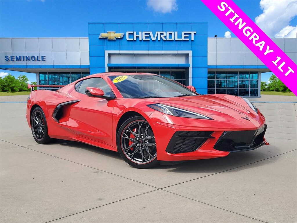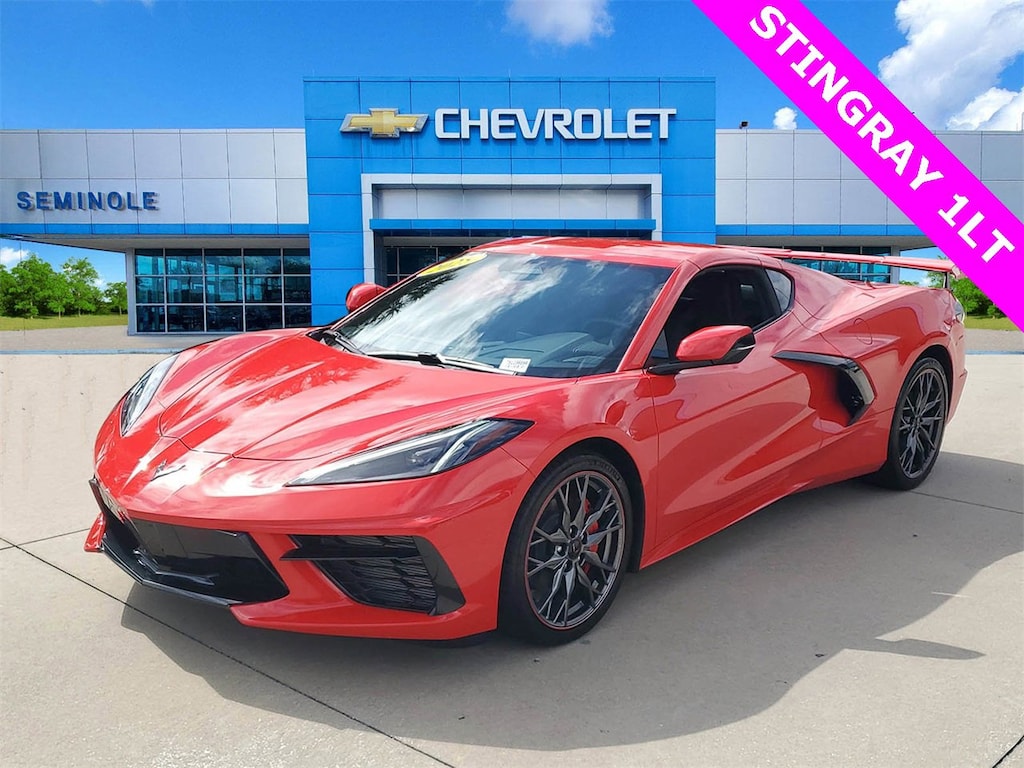 Preferred Equipment Group 1LT, Alloy wheels, Navigation System, Wheels: 19 x 8.5 Fr/20 x 11 Rr Midnight Gray, 10 Speakers, 4-Wheel Disc Brakes, 8-Way Power Driver Seat Adjuster, 8-Way Power Passenger Seat Adjuster, ABS brakes, Air Conditioning, AM/FM radio: SiriusXM, Auto High-beam Headlights, Auto-dimming Rear-View mirror, Automatic temperature control, Black Exhaust Tips, Body-Color High Wing Spoiler (LPO), Body-Color Removable Roof Panel, Brake assist, Bright Red-Painted Calipers, Bumpers: body-color, Compass, Delay-off headlights, Driver door bin, Driver vanity mirror, Dual front impact airbags, Dual front side impact airbags, Electronic Stability Control, Emergency communication system: OnStar and Chevrolet connected services capable, Four wheel independent suspension, Front anti-roll bar, Front Bucket Seats, Front Center Armrest, Front dual zone A/C, Front reading lights, Fully automatic headlights, GT1 Bucket Seats, Heated door mirrors, Illuminated entry, Leather Shift Knob, Leather steering wheel, Low tire pressure warning, Mulan Lthr Seating Surfaces w/Perforated Inserts, Occupant sensing airbag, Outside temperature display, Overhead console, Panic alarm, Passenger door bin, Passenger vanity mirror, Performance Exhaust w/Stainless-Steel Tips, Power door mirrors, Power driver seat, Power passenger seat, Power steering, Power windows, Premium audio system: Chevrolet Infotainment 3 Plus, Radio data system, Radio: Chevrolet Infotainment 3 Premium System, Rear anti-roll bar, Rear window defroster, Remote keyless entry, Speed control, Speed-sensing steering, Sport steering wheel, Steering wheel mounted audio controls, Tachometer, Telescoping steering wheel, Tilt steering wheel, Traction control, Trip computer, Turn signal indicator mirrors, Variably intermittent wipers, and Voltmeter.