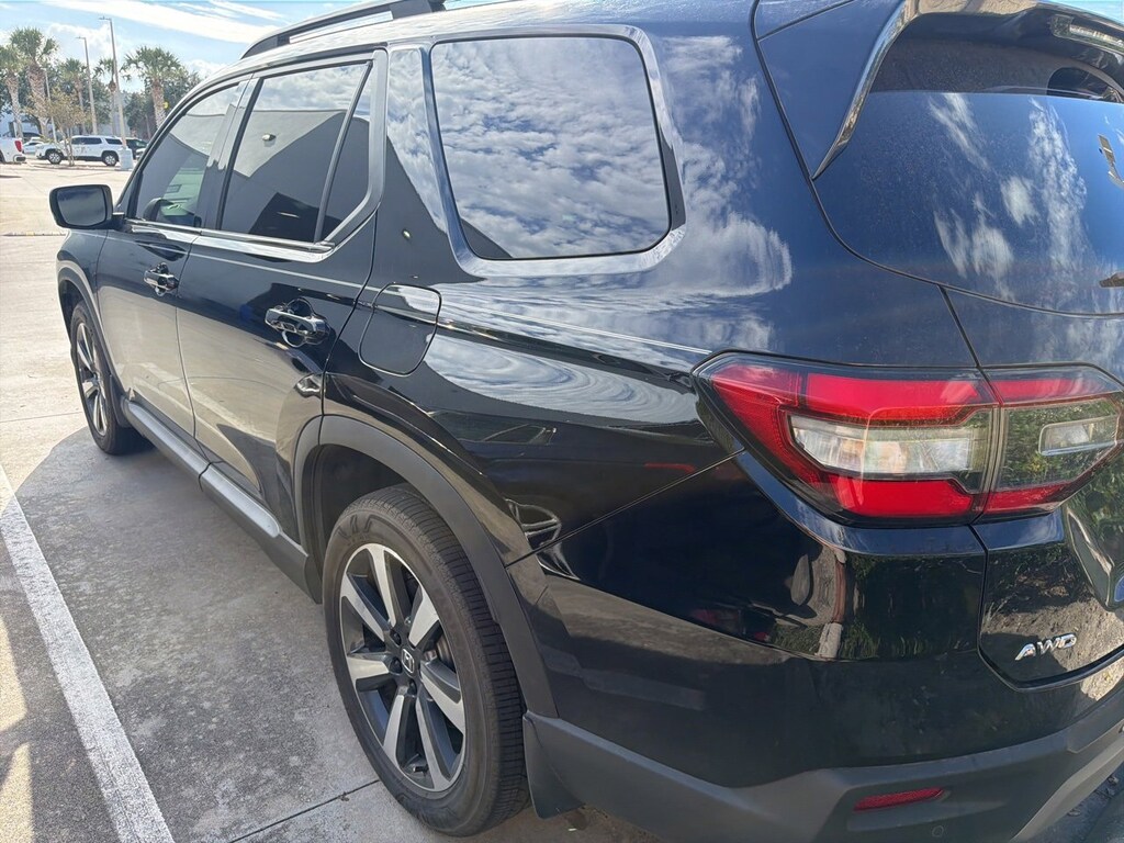 AWD, 12 Speakers, 3rd row seats: split-bench, 4-Wheel Disc Brakes, 4.167 Axle Ratio, ABS brakes, Adaptive Cruise Control: Adaptive Cruise Control (ACC) with Low-Speed Follow, Air Conditioning, Alloy wheels, AM/FM radio: SiriusXM, Apple CarPlay/Android Auto, Auto High-beam Headlights, Auto-dimming Rear-View mirror, Automatic temperature control, Blind Spot Information (BSI) System warning, Bose Premium Sound System, Brake assist, Bumpers: body-color, Compass, Delay-off headlights, Driver door bin, Driver vanity mirror, Dual front impact airbags, Dual front side impact airbags, Electronic Stability Control, Emergency communication system: HondaLink, Exterior Parking Camera Rear, Four wheel independent suspension, Front anti-roll bar, Front Bucket Seats, Front Center Armrest, Front dual zone A/C, Front fog lights, Front reading lights, Fully automatic headlights, Garage door transmitter: HomeLink, Heated door mirrors, Heated Front Bucket Seats, Heated front seats, Honda Satellite-Linked Navigation System, HondaLink Subscription Services, Illuminated entry, Knee airbag, Lane departure: Lane Keeping Assist System (LKAS) active, Leather Seat Trim, Low tire pressure warning, Memory seat, Navigation system: Honda Satellite-Linked Navigation System, Occupant sensing airbag, Outside temperature display, Overhead airbag, Overhead console, Panic alarm, Passenger door bin, Passenger vanity mirror, Power door mirrors, Power driver seat, Power Liftgate, Power moonroof, Power passenger seat, Power steering, Power windows, Radio data system, Rear air conditioning, Rear anti-roll bar, Rear reading lights, Rear seat center armrest, Rear window defroster, Rear window wiper, Reclining 3rd row seat, Remote keyless entry, Security system, SiriusXM, Speed control, Speed-sensing steering, Speed-Sensitive Wipers, Split folding rear seat, Spoiler, Steering wheel mounted audio controls, Tachometer, Telescoping steering wheel, Tilt steering wheel, Traction control, Trip computer, Turn signal indicator mirrors, Variably intermittent wipers, and Wheels: 20 Shark Gray Machine Face with Black Lug Nuts.