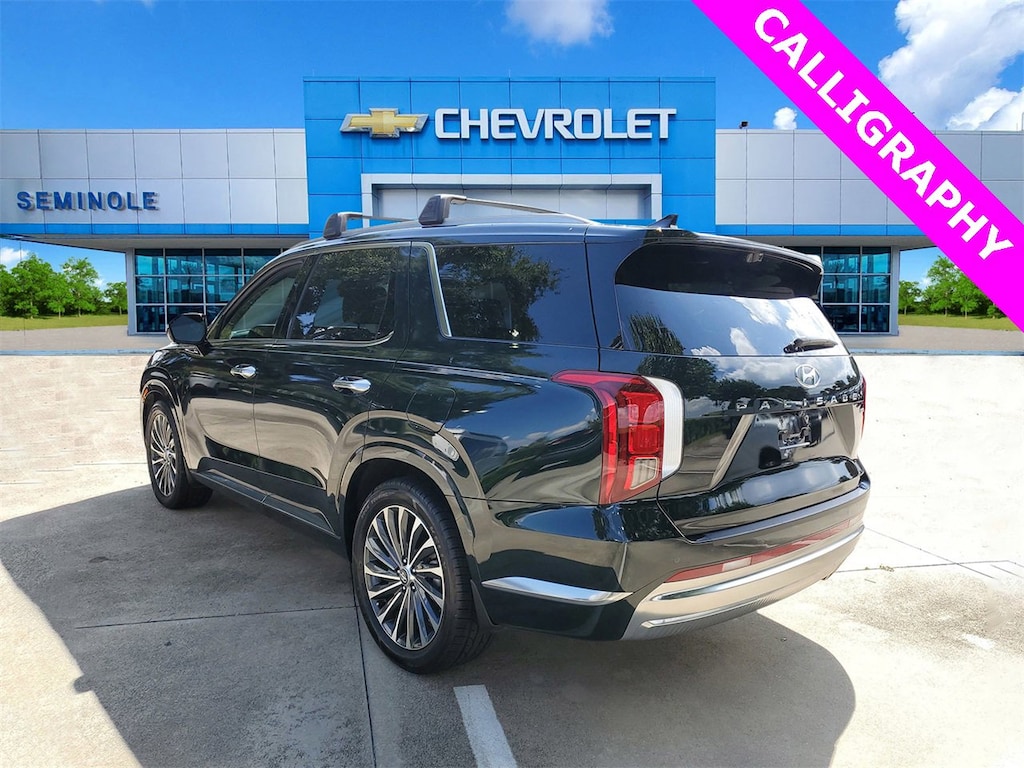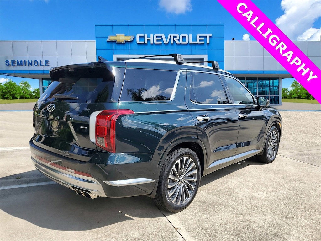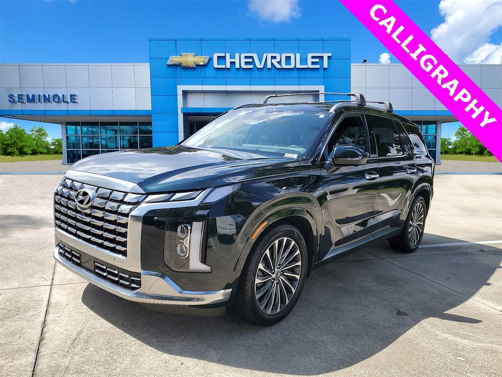 Option Group 01, 12 Speakers, 3.648 Axle Ratio, 3rd row seats: split-bench, 4-Wheel Disc Brakes, ABS brakes, Air Conditioning, Alloy wheels, AM/FM radio: SiriusXM, Apple CarPlay & Android Auto, Auto High-beam Headlights, Auto-dimming door mirrors, Auto-dimming Rear-View mirror, Auto-leveling suspension, Automatic temperature control, Brake assist, Bumpers: body-color, Cargo Cover/Screen, Carpeted Floor Mats, Compass, Delay-off headlights, Driver door bin, Driver vanity mirror, Dual front impact airbags, Dual front side impact airbags, Electronic Stability Control, Emergency communication system: Blue Link Connected Car Service (3-year complimentary subscription), Exterior Parking Camera Rear, Four wheel independent suspension, Front anti-roll bar, Front Bucket Seats, Front Center Armrest, Front dual zone A/C, Front reading lights, Fully automatic headlights, Garage door transmitter: HomeLink, harman/kardon® Speakers, Heads-Up Display, Heated & Ventilated Front Bucket Seats, Heated door mirrors, Heated front seats, Heated rear seats, Heated steering wheel, Illuminated entry, Knee airbag, Low tire pressure warning, Memory seat, Navigation System, Occupant sensing airbag, Outside temperature display, Overhead airbag, Overhead console, Panic alarm, Passenger door bin, Passenger vanity mirror, Power door mirrors, Power driver seat, Power Liftgate, Power moonroof, Power passenger seat, Power steering, Power windows, Premium Nappa Leather Seat Trim, Radio data system, Radio: AM/FM/MP3 Premium Audio System, Rain sensing wipers, Rear air conditioning, Rear anti-roll bar, Rear audio controls, Rear Bumper Applique, Rear reading lights, Rear side impact airbag, Rear window defroster, Rear window wiper, Reclining 3rd row seat, Remote keyless entry, Security system, Speed control, Speed-sensing steering, Split folding rear seat, Spoiler, Steering wheel mounted audio controls, Tachometer, Telescoping steering wheel, Tilt steering wheel, Traction control, Trip computer, Turn signal indicator mirrors, Variably intermittent wipers, Ventilated front seats, Ventilated rear seats, and Wheels: 20 x 7.5J Calligraphy Exclusive Alloy.Option Group 01.CARFAX One-Owner.Odometer is 15230 miles below market average!