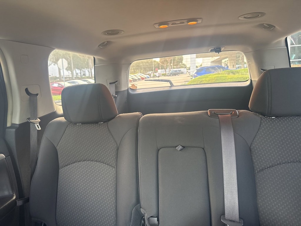FWD, 18 x 7.5 Painted Aluminum Wheels, 2-Way Manual Front Passenger Seat Adjuster, 2nd Row 60/40 Split-Folding Seats, 3.16 Axle Ratio, 3rd Row Flat-Folding 60/40 Bench Seat, 3rd row seats: split-bench, 4-Way Manual Driver Seat Adjuster, 4-Wheel Disc Brakes, 6 Speakers, 8-Passenger Seating (2-3-3 Seating Configuration), ABS brakes, Air Conditioning, Alloy wheels, AM/FM radio: XM, AM/FM Stereo w/MP3 Compatible CD Player, Bodyside moldings, Bumpers: body-color, CD player, Cloth Seat Trim, Delay-off headlights, Driver door bin, Driver vanity mirror, Dual front impact airbags, Dual front side impact airbags, Electronic Stability Control, Emergency communication system: OnStar Safe & Sound, Four wheel independent suspension, Front anti-roll bar, Front Bucket Seats, Front Captain's Chairs, Front Center Armrest w/Storage, Front reading lights, Fully automatic headlights, Heated door mirrors, Illuminated entry, Low tire pressure warning, Occupant sensing airbag, Outside temperature display, Overhead airbag, Panic alarm, Passenger door bin, Passenger vanity mirror, Power door mirrors, Power steering, Power windows, Radio data system, Rear air conditioning, Rear anti-roll bar, Rear reading lights, Rear seat center armrest, Rear window defroster, Rear window wiper, Remote keyless entry, Speed control, Split folding rear seat, Spoiler, Tachometer, Telescoping steering wheel, Tilt steering wheel, Traction control, Trip computer, Variably intermittent wipers, Voltmeter, and XM Radio.FWD.